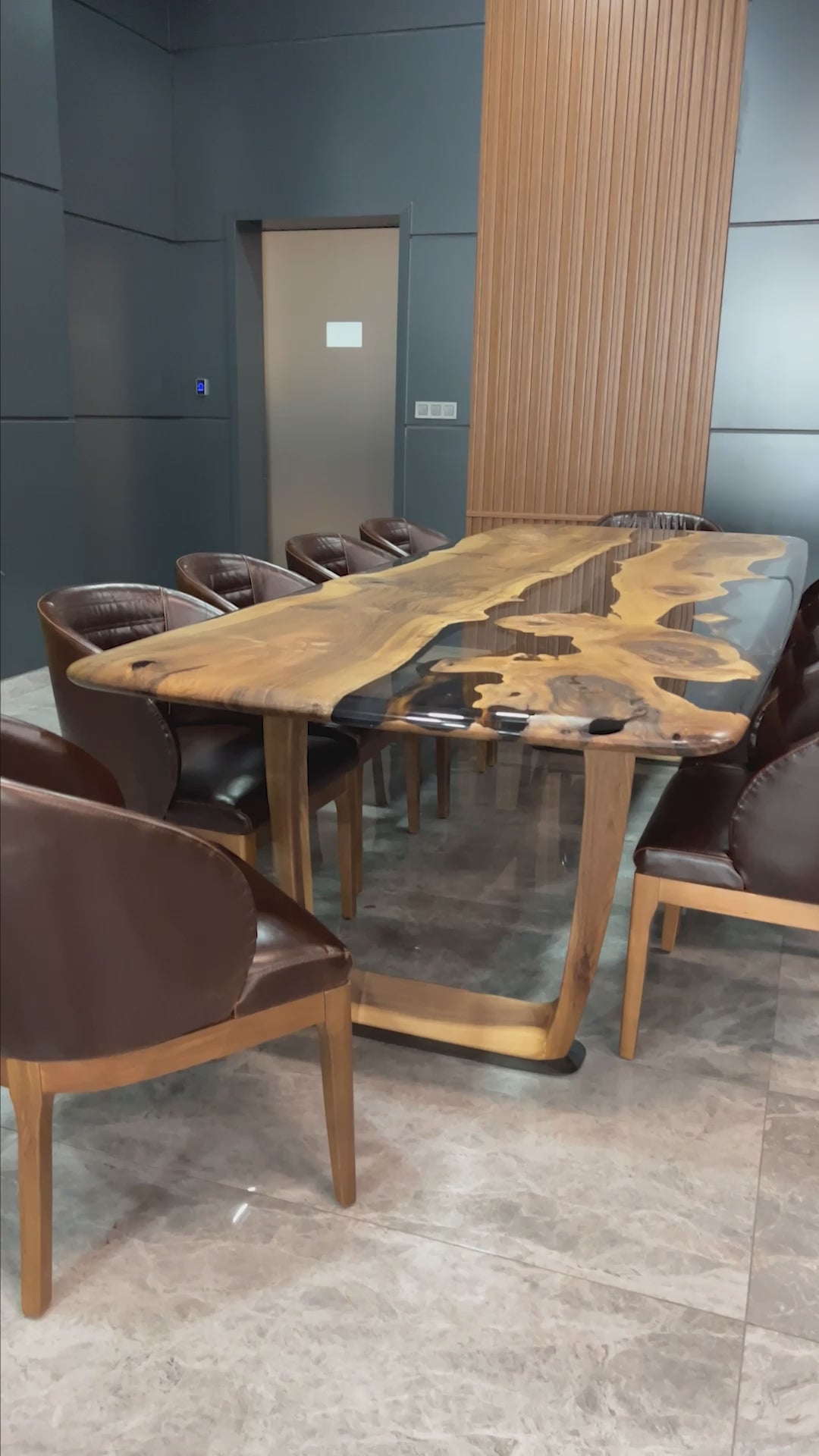 Epoxy Resin River Dining Table Featured Walnut Wood Leg